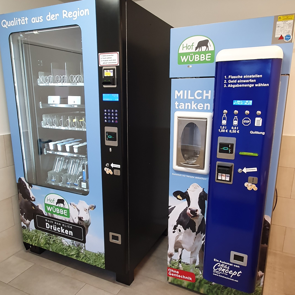 Der Hof Wübbe liegt in der Gemeinde Seevetal im Ortsteil Glüsingen und bewirtschaftet 123 Hektar. Mit einem Warenautomaten und einer Milchtankstelle soll die Direktvermarktung am Hof aufgebaut werden. Frische Milch direkt vom Hof kann so zu flexiblen Öffnungszeiten erworben werden. Die Milchtankstelle wird durch einen Warenautomaten mit regionalen Produkten ergänzt.