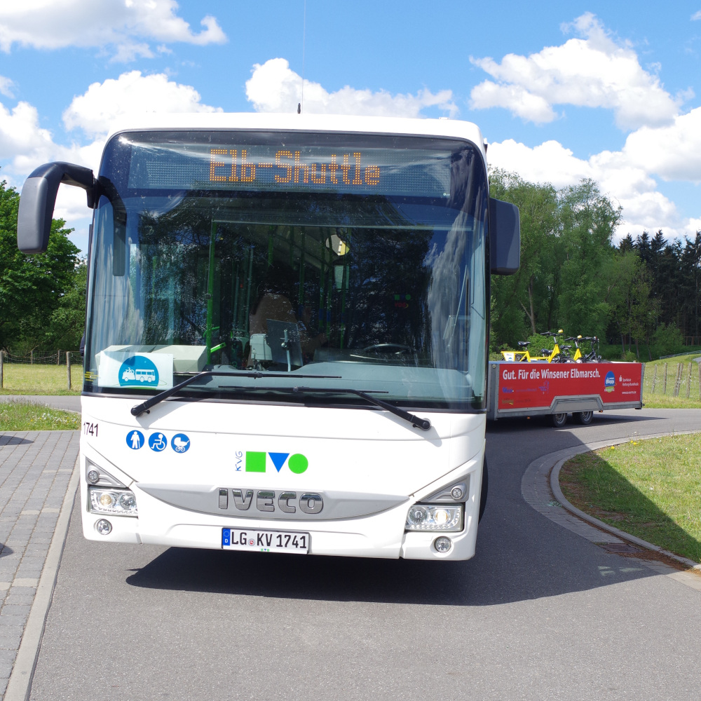 Der Freizeitbus mit Fahrradanhänger verbindet seit 2013 die Gemeinden Seevetal, Stelle, die Stadt Winsen (Luhe) und die Samtgemeinde Elbmarsch untereinander